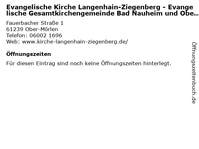 | Evangelische Kirche Langenhain-Ziegenberg - Evangelische Gesamtkirchengemeinde Bad Nauheim und Ober-Mörlen anrufen | |