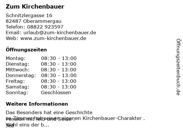 | Öffnungszeiten Zum Kirchenbauer in Oberammergau anzeigen | |