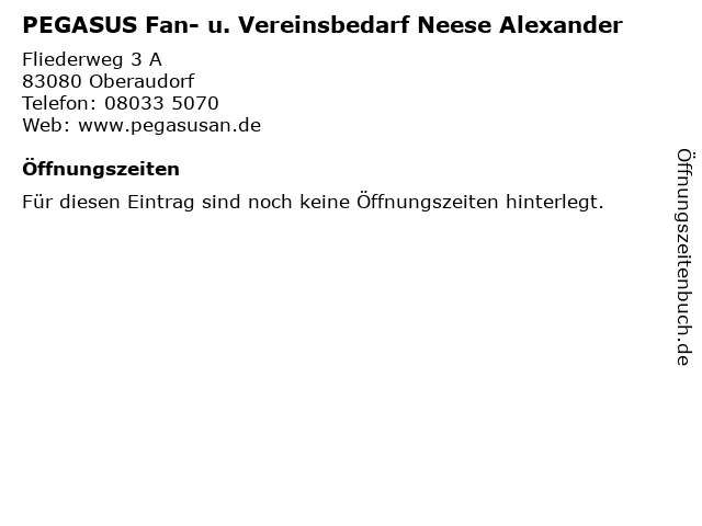 | PEGASUS Fan- u. Vereinsbedarf Neese Alexander anrufen | |