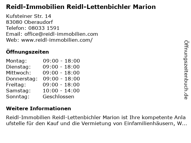 Branchen & Suchbegriffe zu Reidl-Immobilien Reidl-Lettenbichler Marion:immobilien, lettenbichler, marion, reidl |