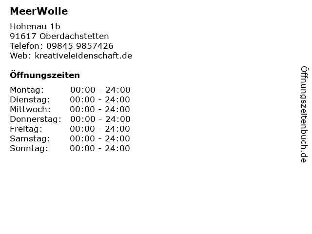 | Öffnungszeiten MeerWolle in Oberdachstetten anzeigen | |