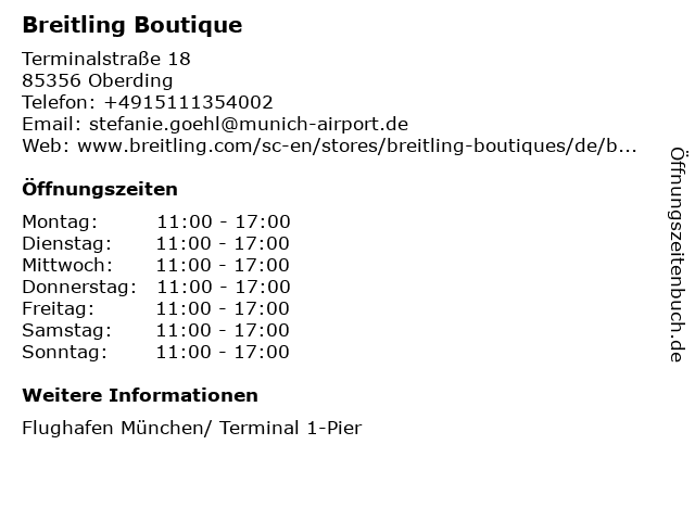 | Öffnungszeiten Breitling Boutique in Oberding anzeigen | |