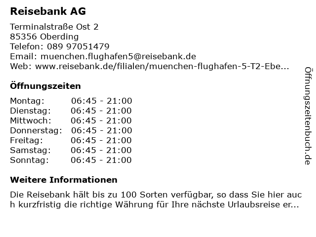 | Öffnungszeiten Reisebank AG in Oberding anzeigen | |