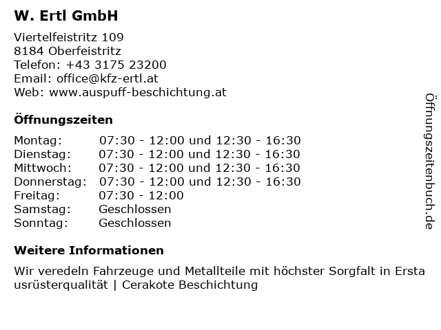 | Öffnungszeiten W. Ertl GmbH in Oberfeistritz anzeigen | |