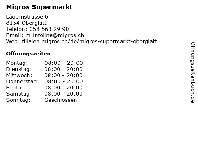 | Öffnungszeiten Migros Supermarkt in Oberglatt anzeigen | |