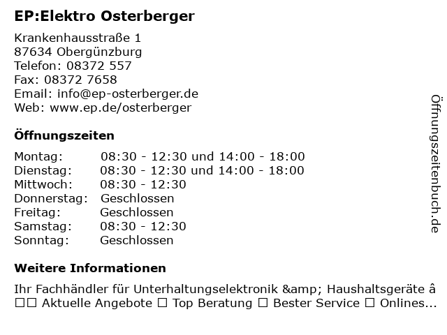 Öffnungszeiten EP:Elektro Osterberger