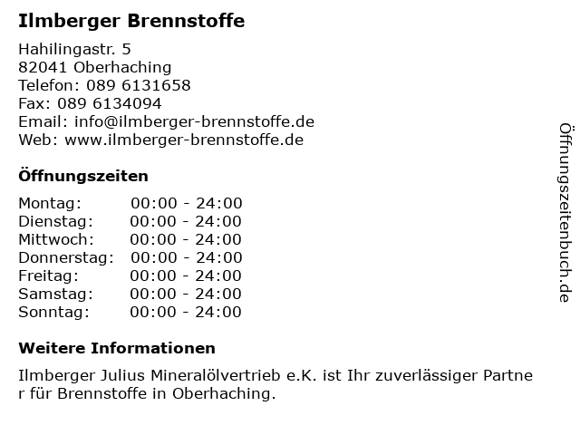 | Öffnungszeiten Ilmberger Brennstoffe in Oberhaching anzeigen | |