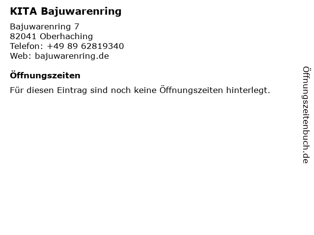 | Öffnungszeiten KITA Bajuwarenring in Oberhaching anzeigen | |