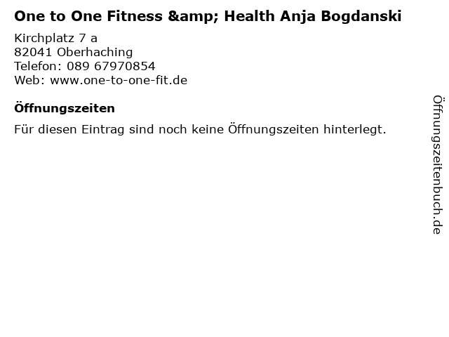 | One to One Fitness & Health Anja Bogdanski anrufen | |
