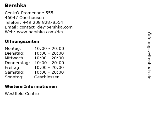 | Öffnungszeiten Bershka in Oberhausen anzeigen | |