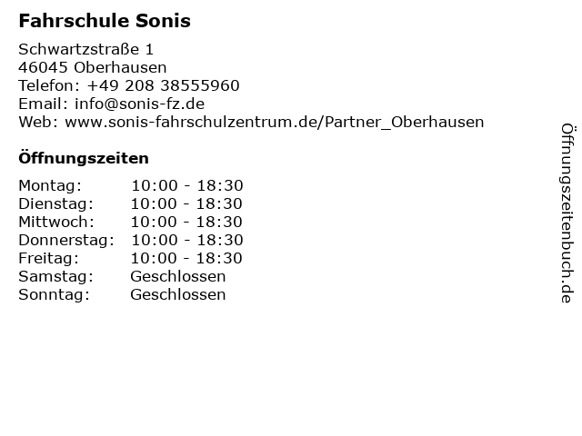| Öffnungszeiten Fahrschule Sonis in Oberhausen anzeigen | |