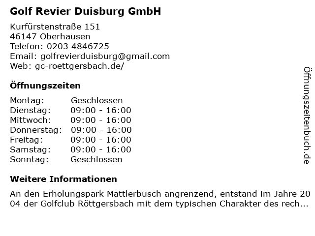 | Adresse Golf Revier Duisburg GmbH in Oberhausen anzeigen |
