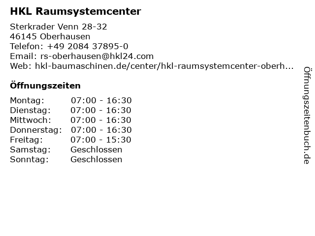 | Öffnungszeiten HKL Raumsystemcenter in Oberhausen anzeigen | |