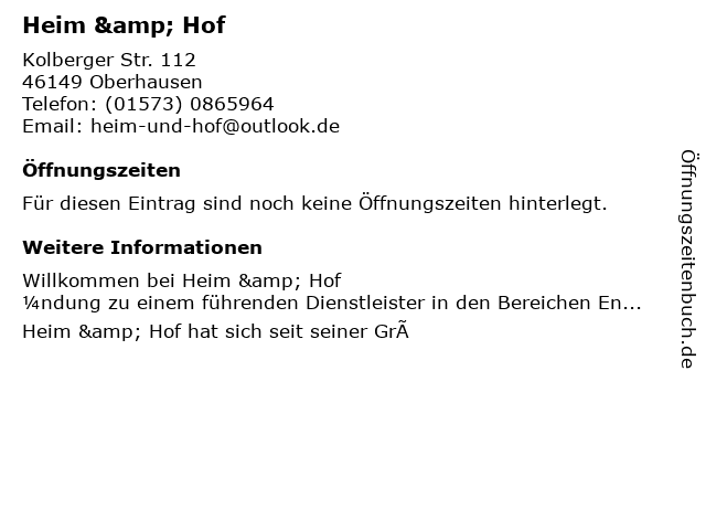 | Öffnungszeiten Heim & Hof in Oberhausen anzeigen | |