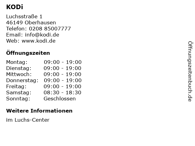 Öffnungszeiten KODi in Oberhausen anzeigen | |