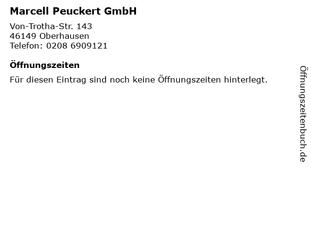 | Öffnungszeiten Marcell Peuckert GmbH in Oberhausen anzeigen | |