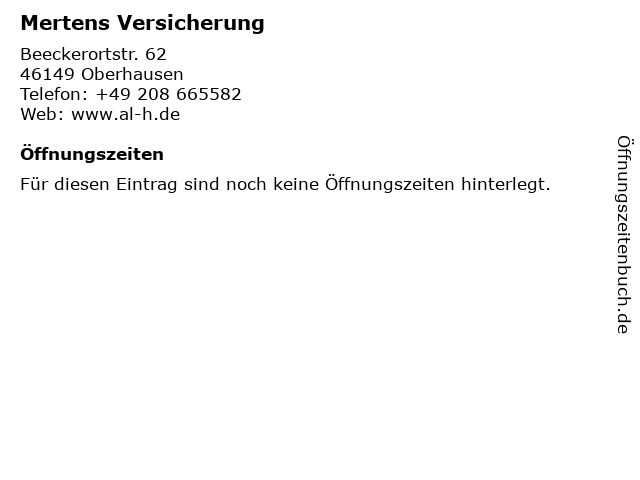 | Öffnungszeiten Mertens Versicherung in Oberhausen anzeigen | |