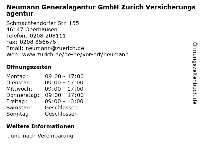 2 Aachen Münchener Allfinanz Bußfeld u. Böhmer Versicherungsagentur (Entfernung: 2,45 km) Weißensteinstr. 94, 46149 Oberhausen 5 SIGNAL IDUNA Versicherung Generalagentur Bernd Hörter (Entfernung: 4,37 km) Hiltgenstraße 8a, 47167 Duisburg 6 Ursula Ball-Striegel Versicherungsagentur (Entfernung: 5,91 km) Friedrich-Ebert-Str. 491, 47178 Duisburg |