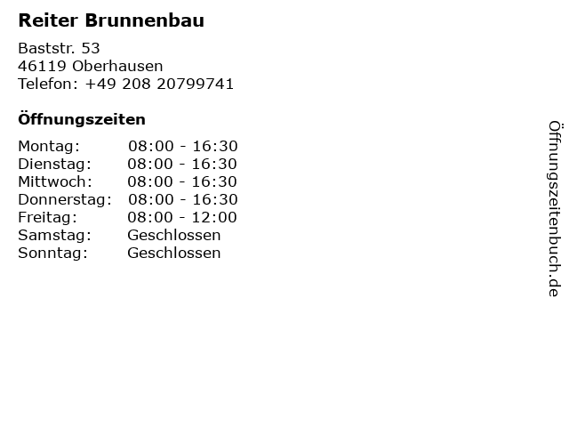 | Öffnungszeiten Reiter Brunnenbau in Oberhausen anzeigen | |