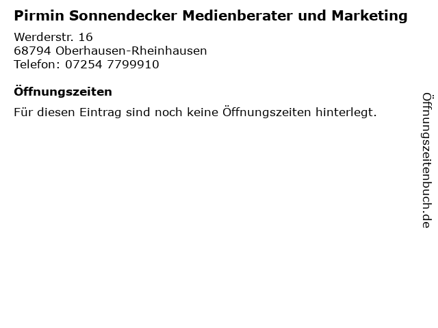 | Pirmin Sonnendecker Medienberater und Marketing anrufen | |