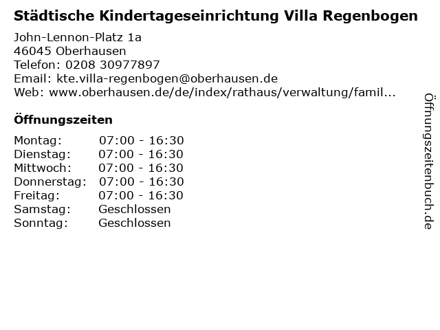 1 Städtische Kindertageseinrichtung Villa Kunterbunt (Entfernung: 0,07 km) John-Lennon-Platz 1, 46045 Oberhausen 2 Städtische Kindertageseinrichtung Am Uhlandpark (Entfernung: 1,09 km) Uhlandstr. 35, 46047 Oberhausen 5 Kath. Kindertageseinrichtung Christus - Unser Friede (Entfernung: 3,98 km) Wiesbadener Straße 99, 47138 Duisburg 6 Evangelischer Kindergarten Unter dem Regenbogen (Entfernung: 5,01 km) Knappenweg 28, 45473 Mülheim An Der Ruhr |