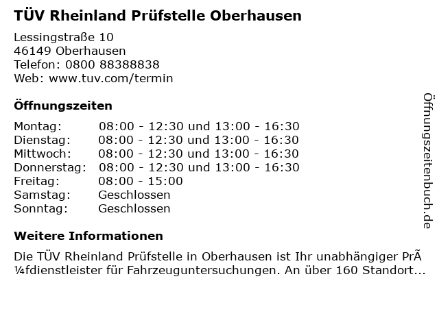 Branchen & Suchbegriffe zu TÜV Rheinland Prüfstelle Oberhausen:prüfstelle, rheinland, tüv |