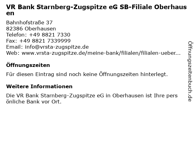 | VR Bank Starnberg-Zugspitze eG SB-Filiale Oberhausen anrufen | |