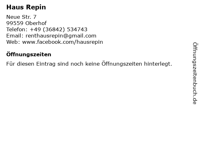 | Öffnungszeiten Haus Repin in Oberhof anzeigen | |