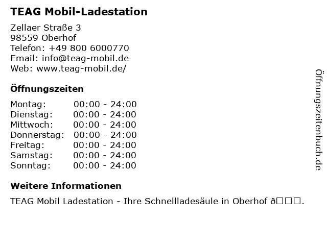 TEAG Mobil-Ladestation in Oberhof: Telefonnummer, Öffnungszeiten und Adresse