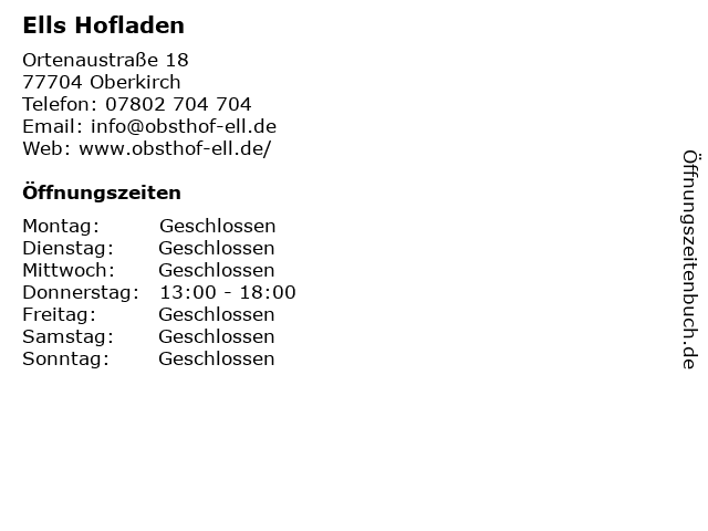 | Öffnungszeiten Ells Hofladen in Oberkirch anzeigen | |