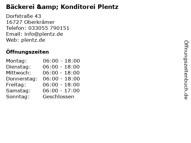 4 Bäckerei & Konditorei Plentz - Germendorf (Entfernung: 7,16 km) Straße am Globus 1, 16515 Oranienburg 5 6 Bäckerei & Konditorei Plentz - Altstadtbäckerei (Entfernung: 10,21 km) Havelstraße ., 16515 Oranienburg |