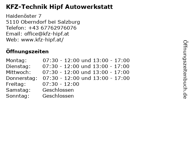 5 KFZ Werkstätte Zauner Rudolf Autowerkstatt (Entfernung: 4,84 km) Gewerbegebiet Ehring 11, 5112 Salzburg 6 |