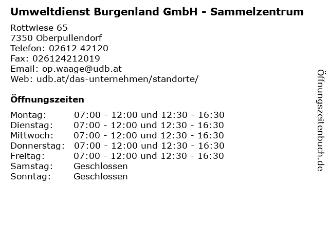 1 Umweltdienst Burgenland - Sperrmüll und Problemstoffe (Entfernung: 0,00 km) Rottwiese 65, 7350 Oberpullendorf 4 Hypo-Bank Burgenland AG- Filiale Oberpullendorf (Entfernung: 2,38 km) Hauptstraße 9, 7350 Oberpullendorf 6 |