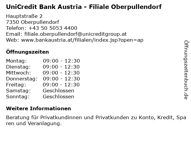Branchen & Suchbegriffe zu UniCredit Bank Austria - Filiale Oberpullendorf:austria, bank, oberpullendorf, privatkundinnen und privatkunden, unicredit |