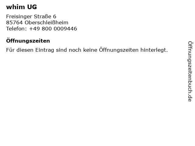 | Öffnungszeiten whim UG in Oberschleißheim anzeigen | |