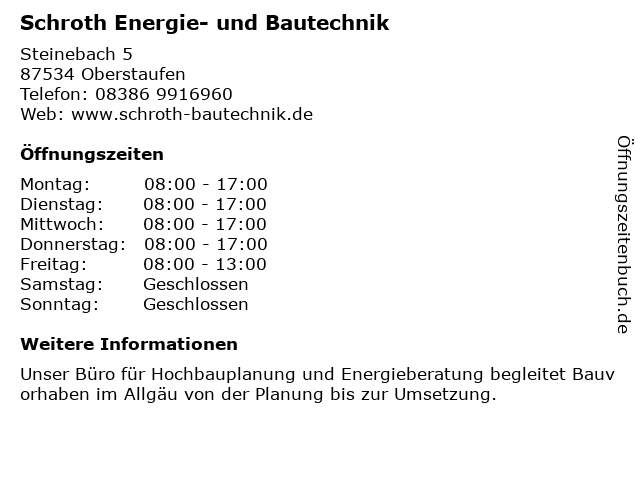Branchen & Suchbegriffe zu Schroth Energie- und Bautechnik:architekturgestalter, bauberater, bautechnik, energie, energiesparberatung, schroth |