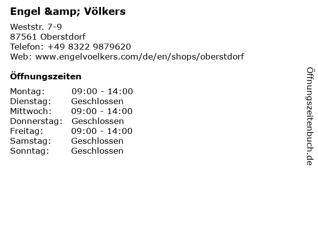 | Öffnungszeiten Engel & Völkers in Oberstdorf anzeigen | |