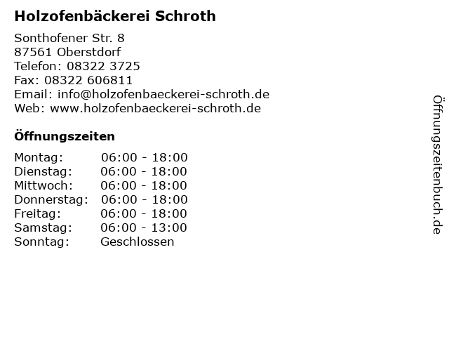 | Öffnungszeiten Holzofenbäckerei Schroth in Oberstdorf anzeigen | |