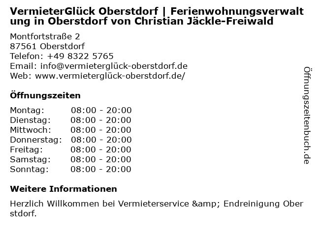Branchen & Suchbegriffe zu VermieterGlück Oberstdorf | Ferienwohnungsverwaltung in Oberstdorf von Christian Jäckle-Freiwald:apartments, bergbahnen, bild- und textbearbeitung, christian, ferienwohnung, ferienwohnungsverwaltung, ferienwohnungverwaltung, freiwald, gutscheine, gästebetreuung, häuser, jäckle, kommunikation mit dem tourismusverband, kraxenverleih, oberstdorf, pflege ihrer online-präsenz, reparaturen, semmeldienst, service, vermieterglück, vermietung, verwaltung, von, wohnungen |