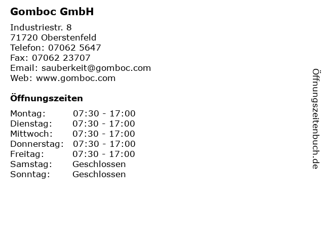 Gomboc GmbH in Oberstenfeld: Telefonnummer, Öffnungszeiten und Adresse
