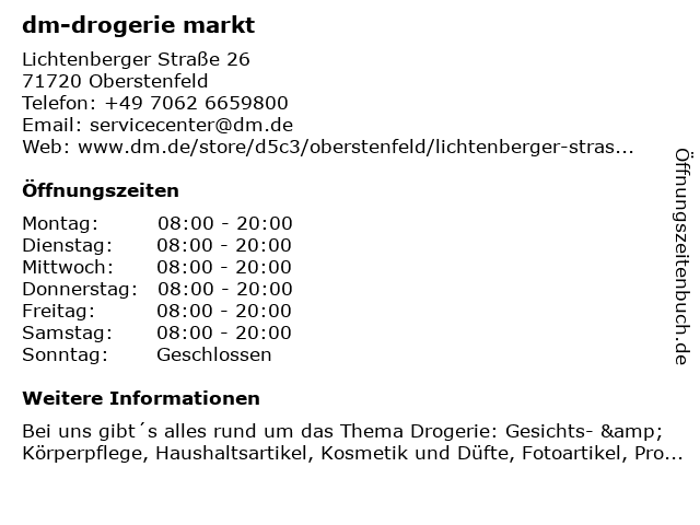 Öffnungszeiten dm-drogerie markt in Oberstenfeld anzeigen | |