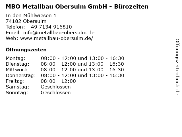 Branchen & Suchbegriffe zu MBO Metallbau Obersulm GmbH - Bürozeiten:alu, bearbeitung, bürozeiten, glas, konstruktion, mbo, metallbau, obersulm, planung |