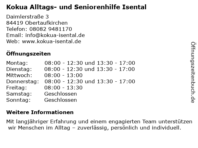Branchen & Suchbegriffe zu Kokua Alltags- und Seniorenhilfe Isental:alltags, isental, kokua, seniorenhilfe |