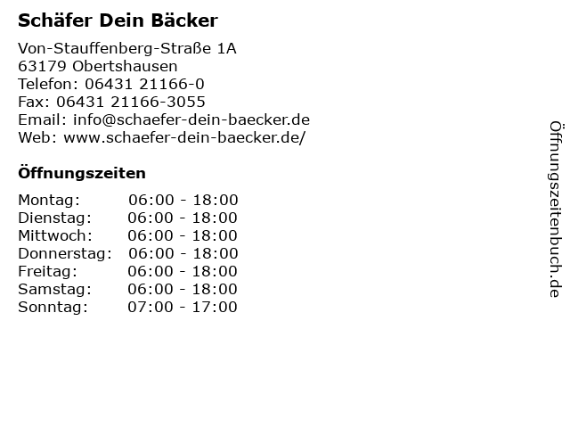 | Öffnungszeiten Schäfer Dein Bäcker in Obertshausen anzeigen | |