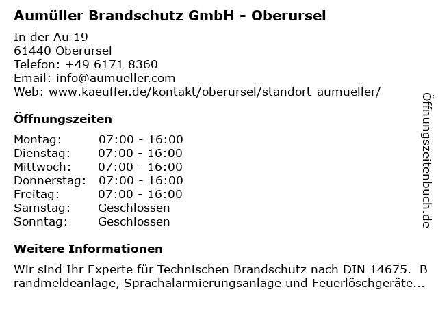 1 Aumüller Feuerschutz & Elektrotechnik GmbH (Entfernung: 0,60 km) Weißkirchener Straße 11, 61440 Oberursel 2 Musik Aumüller e. K. Musikfachgeschäft (Entfernung: 0,67 km) Kumeliusstraße 11, 61440 Oberursel (Taunus) 5 Dr. med. Michael Aumüller und Dr. mes Andreas Fürsch (Entfernung: 8,46 km) Frankfurter Straße 28, 61462 Königstein 6 |