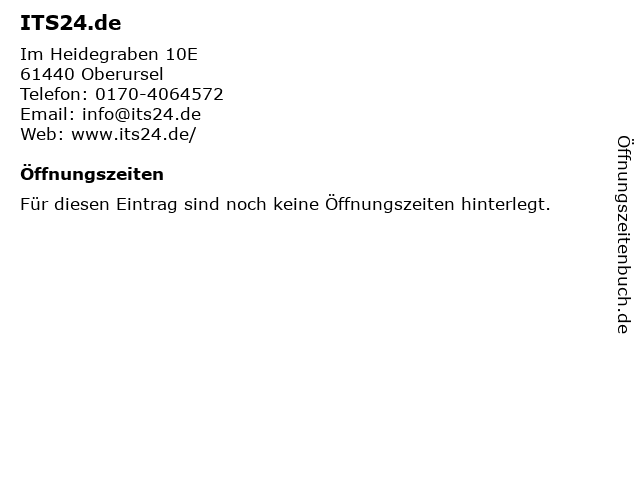 | Öffnungszeiten ITS24.de in Oberursel anzeigen | |