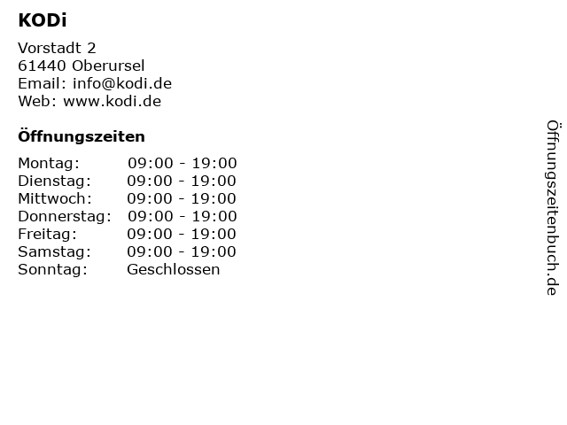 | Öffnungszeiten KODi in Oberursel anzeigen | |