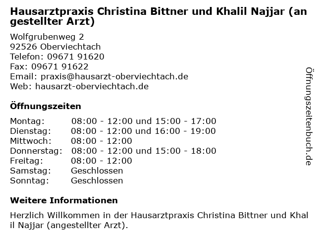 Branchen & Suchbegriffe zu Hausarztpraxis Christina Bittner und Khalil Najjar (angestellter Arzt):angestellter, arzt, bittner, christina, hausarztpraxis, khalil, najjar |
