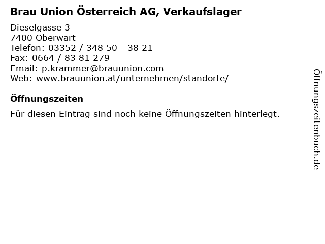 | Brau Union Österreich AG, Verkaufslager anrufen | |