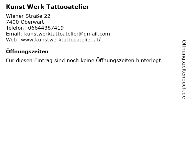 | Öffnungszeiten Kunst Werk Tattooatelier in Oberwart anzeigen | |